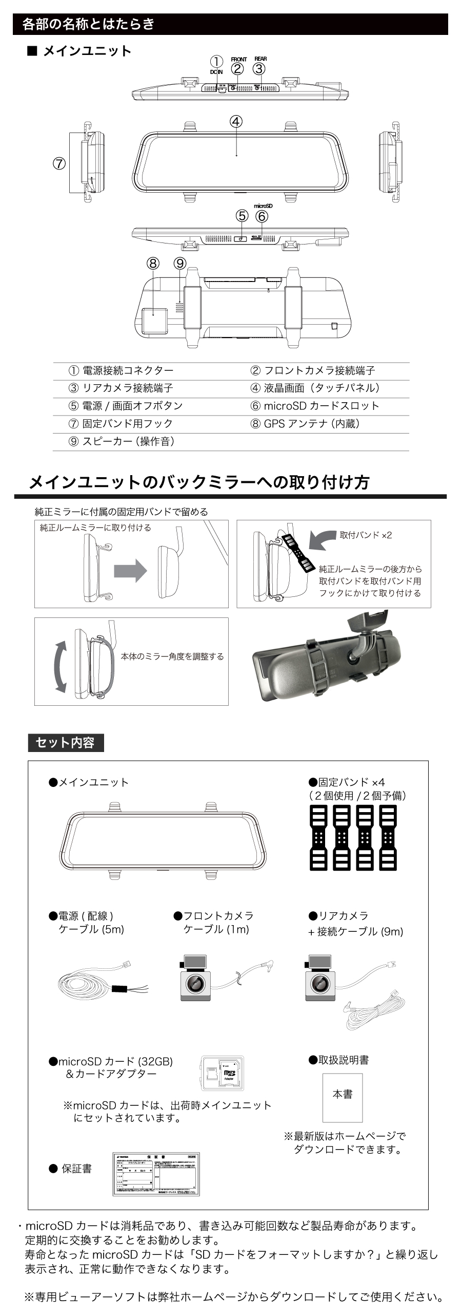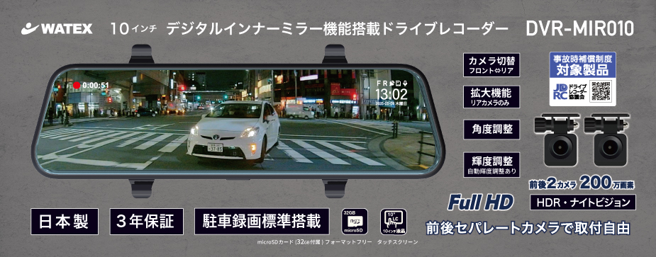 デジタルインナーミラー機能搭載 ドライブレコーダー DVR-MIR010