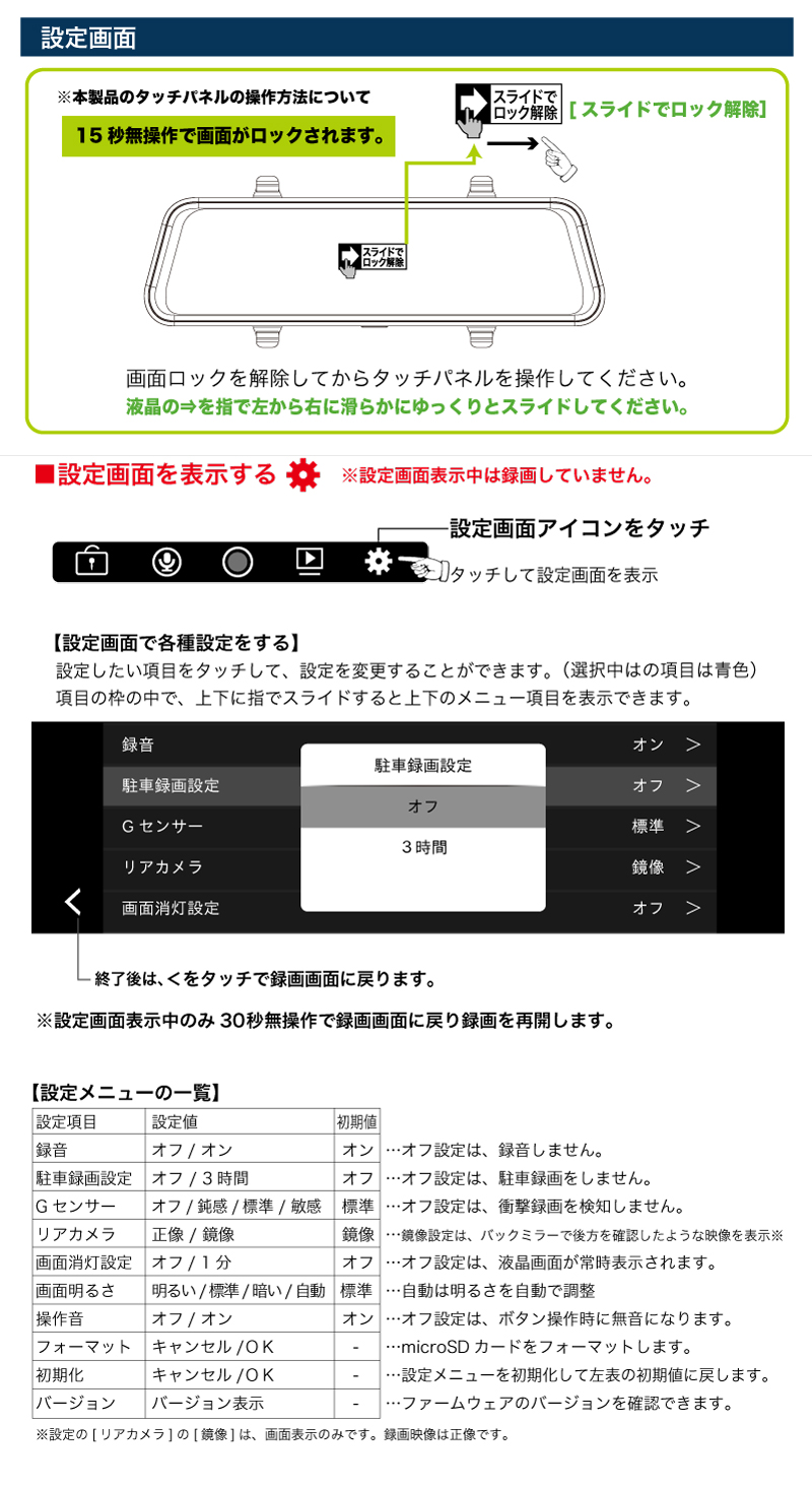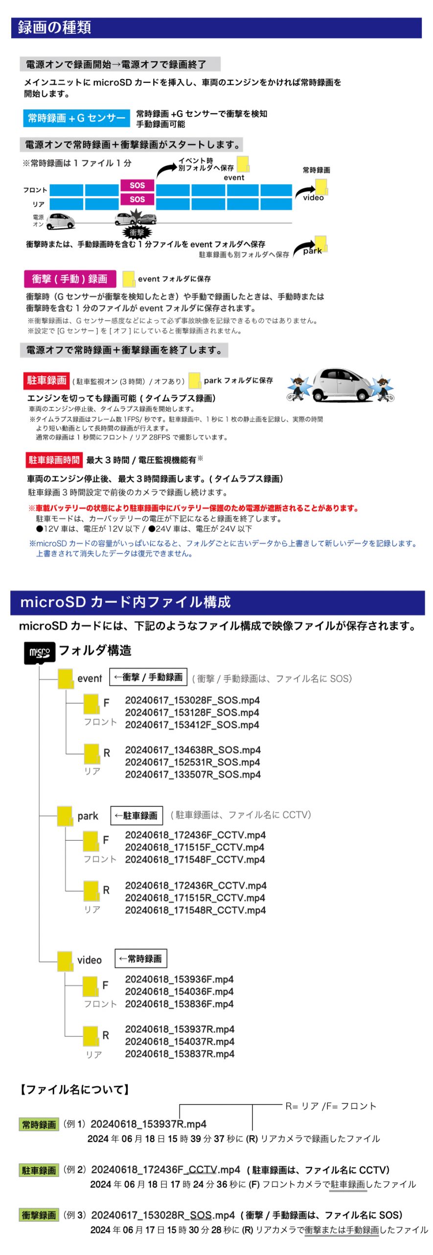 録画方式【常時録画、イベント録画、駐車録画(タイムラプス)】