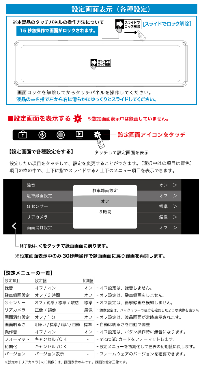 録画方式【常時録画、イベント録画、駐車録画(タイムラプス)】