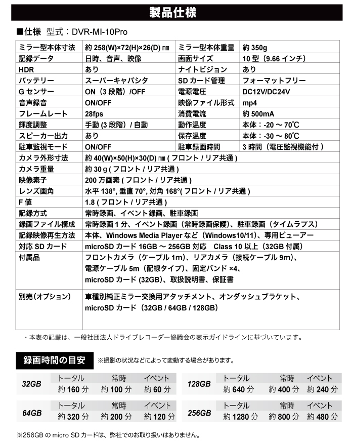 DVR-MI-10Pro仕様